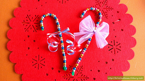 아이가 26개월 되었을 때부터 본격적으로 시작해 87개월에 될 때까지 해온 엄마표 미술놀이 중 [크리스마스 맞이 만들기]를 모아 보았어요!특별한 재주는 아니지만, 아이와 크리스마스 분위기를 물씬 느꼈던 순간순간을 소개해볼까 합니다. 미리 메리 크리스마스 즐기러 가볼까요?^^ 1. 캔디 케인(Candy Cane)으로 패턴을 배워 볼까? 크리스마스 시즌이 되면 마트마다 줄줄이 줄을 서서 주인을 기다리고 있는 지팡이 모양의 박하사탕인 캔디 케인(Candy Cane)을 만들어 보기로 했어요! 맛있는 사탕은 아니지만, 만드는 동안 수학의 기본개념인 '패턴'을 자연스럽게 배울 수 있어 좋아요. * 준비물: 모루, 비즈- 모루의 끝에 비즈 하나를 끼운 후, 모루를 한 번 감아서 고정해주세요.- 모루에 자신이 정한 패..